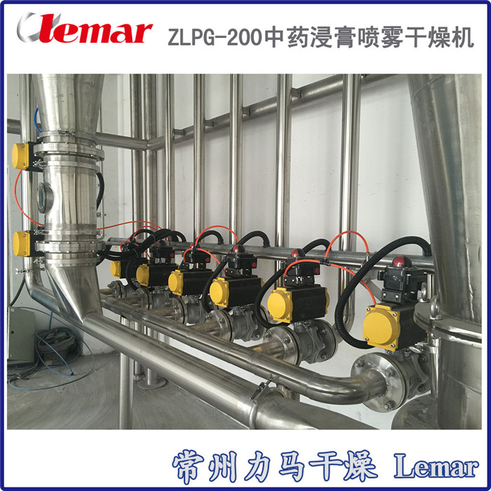 2、塔壁上配有冷風(fēng)夾套裝置,解決了中藥浸膏粘壁問(wèn)題,同時(shí)壁溫較低,不會(huì )使物料產(chǎn)生焦化變質(zhì)現象;
