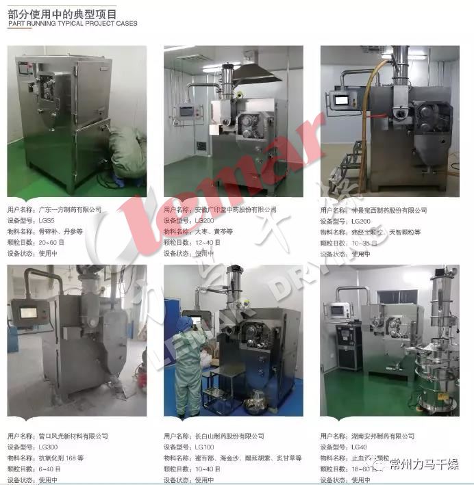 近年來(lái),公司研發(fā)的噴霧干燥和干法制粒的組合成為制藥行業(yè)的新寵。僅僅在配方顆粒產(chǎn)業(yè)的客戶(hù)就有:四川新綠色藥業(yè)科技有限公司、浙江惠松制藥有限公司、湖南春光九匯現代中藥有限公司、北京春風(fēng)藥業(yè)有限公司、山西國新晉藥集團有限公司、勁牌生物醫藥集團有限公司、廣州香雪制藥股份有限公司等眾多著(zhù)名企業(yè)。