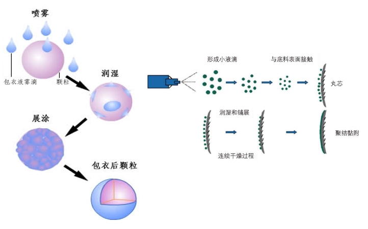 <100μm的粉體,由于粒徑小、表面能大,粉體間作用力大,用傳統流化床底噴包衣容易發(fā)生團聚,就會(huì )發(fā)生聚團流態(tài)化,無(wú)法實(shí)現粉體包衣,針對這一類(lèi)粉體,我們引進(jìn)了一種復合型流化床,核心點(diǎn)有:1、底部帶有攪拌結構的高速轉盤(pán),用機械能帶動(dòng)物料做圓周運動(dòng),有效防止了像傳統流化床單一動(dòng)能使粉體易聚團現象的發(fā)生;2、底部側噴噴槍?zhuān)梢欢▕A角埋在物料中進(jìn)行噴液,包衣材料利用率高,接觸面積大,有效防止了像傳統導流筒流化包衣液利用率低,易黏連現象的發(fā)生;3、旋轉打散篩分結構,使包衣粒徑更均一、重現性和工藝穩定性更高。為此,專(zhuān)門(mén)細分兩個(gè)型號,MP型號針對80μm以上的粉體進(jìn)行包衣,SFP型號專(zhuān)門(mén)針對80μm以下的粉體進(jìn)行包衣。